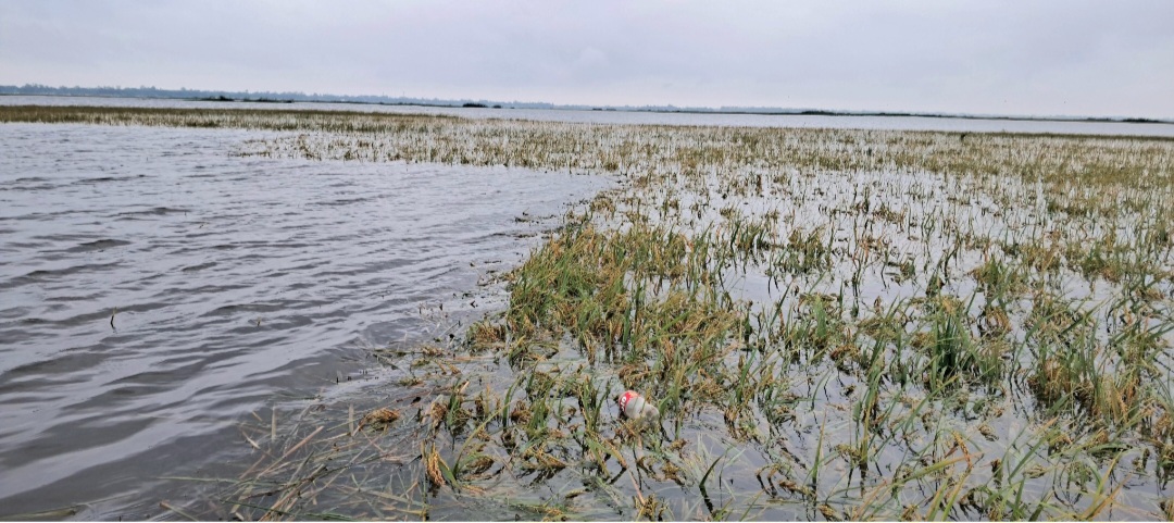 জগন্নাথপুরে অতিবৃষ্টিতে হাওরে তলিয়ে গেছে পাকা ধান।