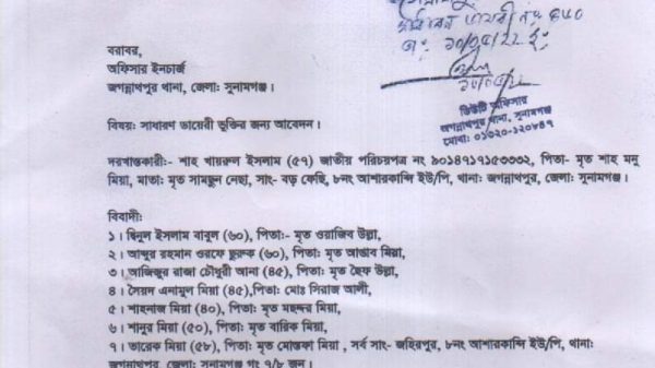 জগন্নাথপুর প্রতিনিধি:: সুনামগঞ্জ জেলার জগন্নাথপুর উপজেলার আশারকান্দি ইউনিয়নের ৬ নং ওয়ার্ডের সাবেক ইউ/পি সদস্য আশারকান্দি ইউনিয়ন আওয়ামীলীগের যুগ্ন সাধারন সম্পাদক শাহ্ খায়রুল ইসলামকে তার নিজ মোবাইল ফোনে প্রাননাশের হুমকী ও