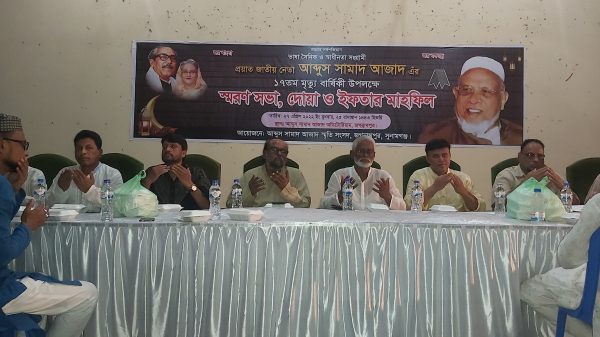 জগন্নাথপুর প্রতিনিধি:: বর্ষীয়ান রাজনীতিবিদ জাতীয় নেতা সাবেক পররাষ্ট্রমন্ত্রী আব্দুস সামাদ আজাদের ১৭তম মৃত্যু বার্ষিকী উপলক্ষে তাঁর জন্মভূমি সুনামগঞ্জের জগন্নাথপুরে তাঁর প্রতিকৃতি পুষ্পস্তবক অর্পণ, স্মরণ সভা, দোয়া ও ইফতার মাহফিল অনুষ্ঠিত
