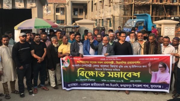 হিফজুর রহমান তালুকদার জিয়া:: সুনামগঞ্জ জেলার জগন্নাথপুর উপজেলায় বাংলাদেশের সাবেক প্রধানমন্ত্রী, বিএনপির চেয়ারপার্সন দেশনেত্রী বেগম খালেদা জিয়ার মুক্তি এবং সু-চিকিৎসার জন্য বিদেশে চিকিৎসার দাবিতে বিক্ষোভ সমাবেশ করেছে জগন্নাথপুর উপজেলা বিএনপি।
