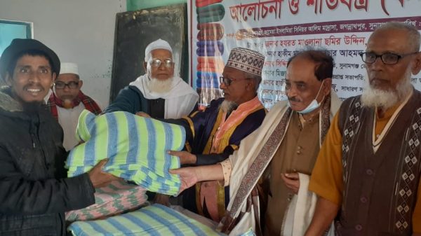 জগন্নাথপুর প্রতিনিধিঃ- মুক্তিযুদ্ধের চেতনায় উজ্জীবিত স্বাধীনতা স্বপক্ষের ওলামা মাশায়েখদের নিয়ে গঠিত বাংলাদেশ জাতীয় সুন্নী ওলামা মাশায়েখ পরিষদ কেন্দ্রীয় কমিটির উদ্যোগে হত দরিদ্র মানুষদের মধ্যে শীতবস্ত্র (কম্বল) বিতরণ করা হয়েছে। আজ